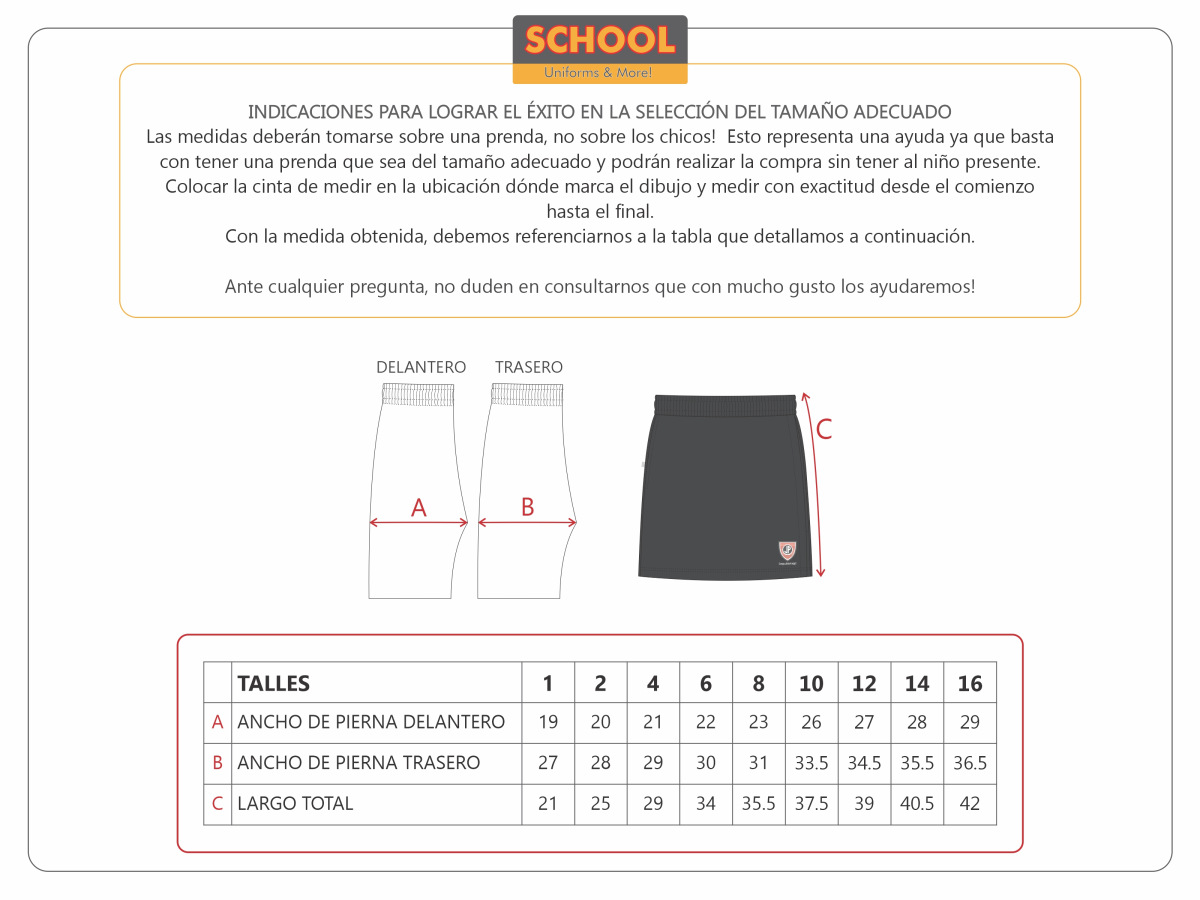 Short-pollera con bolsillos realizado en gabardina que permite movilidad y a la vez mantiene su color inalterado con los lavados.  En todas nuestras prendas encontrarán una etiqueta dónde colocar los datos personales.