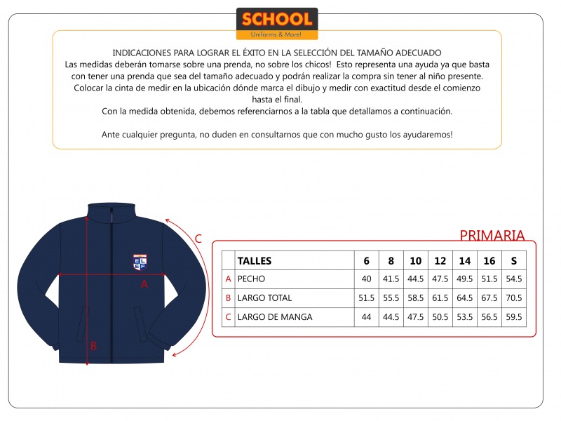 Campera con cierre realizada en micropolar "bondeado".  La tela está tejida de manera doble, lo cuál lo hace más abrigado y resistente.  El tejido es anti-peeling y resiste lavados frecuentes.  La prenda lleva una etiqueta de identificación bordada colocada en un lugar visible dónde detallar los datos personales.
