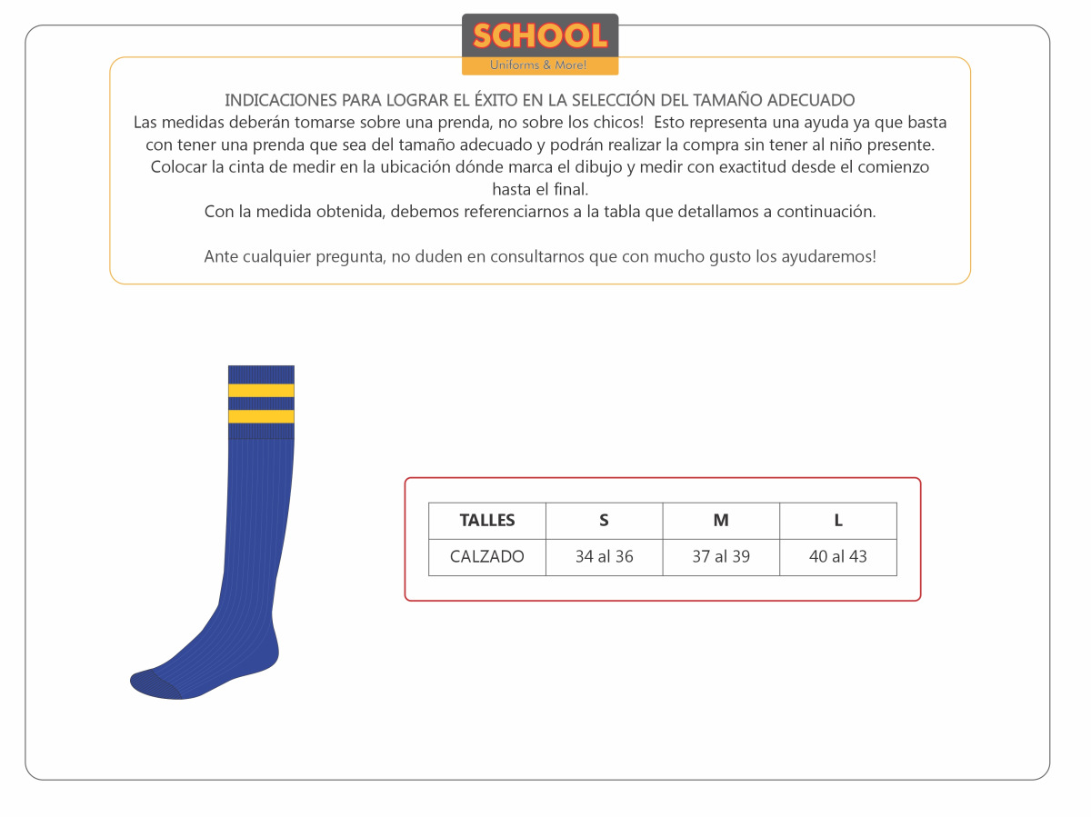 Talle S - calzado 34 al 36; Talle M - calzado 37 al 39; Talle L - calzado 40 al 43